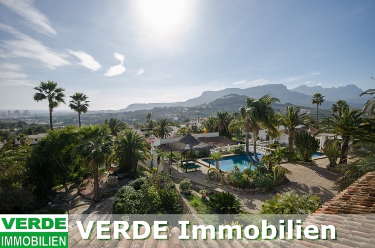 In herrlicher Panoramalage mit Blick auf den Peñón erstreckt sich auf einem 5.580 m² Grundstück ein Gartenparadies, welches mit einer imposanten Villa (5 Zimmer) inkl. Einliegerwohnung (2