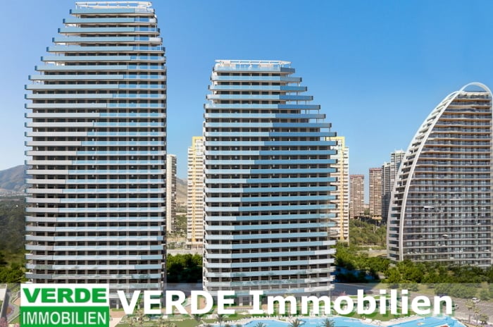Diese Komfortwohnungen befinden sich in den neuen Zwillingstürmen an der Playa de Poniente, die mit ihrer modernen Architektur die Skyline Benidorms neu prägen. Auf einer großen Parkanlage entstehen zwei neue Wohntürme mit Gemeinschafts- und Erholungsbereiche. Innerhalb der zum Gebäude gehörenden, weitläufigen Parkanlage befinden sich ein großer Infinity-Swimmingpool mit großzügigen Liegeflächen, drei Whirlpools, Chillout-Loungebereiche mit Bars, ein großes Sportareal und im Erdgeschoss ein Panorama-Fitnessstudio. Für Kinder gibt es einen Kids-Club, Kinderspielplatz, Cinema- und Gaming-Room sowie einen Kinderpool. Eine besondere Wohnanlage für den gehobenen Anspruch!