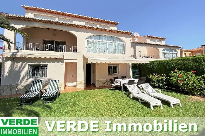 In exklusiver und ruhiger Lage des Golfresorts Oliva Nova befindet sich diese neuwertige Doppelhaushälfte. Schon beim Betreten werden Sie eingefangen von der hellen und freundlichen Atmosphäre. Das Haus verfügt über eine große Wohnküche, mehrere Bäder und vier Schlafzimmer, welche sich auf 3 Etagen verteilen. Die Einrichtung erfolgte im spanischen Stil. Im Erdgeschoss befinden sich die großzügige, helle und komplett ausgestattete Essküche im Landhausstil, ein Ankleide- und ein Schlafzimmer mit Duschbad. Von der Küche gelangt man über die überdachte Arkade direkt in den gepflegten Gartenbereich. Im ersten Obergeschoss befindet sich das Wohnzimmer mit Wintergarten und ein weiteres Schlafzimmer mit Duschbad. Das Hauptschlafzimmer und ein Gästezimmer befinden sich im zweiten Obergeschoss mit den dazugehörenden Bädern en Suite.